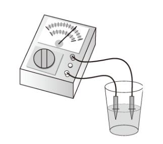 當您只想確認是否存在導電性時,可以使用標準的萬用表。將測試儀置于測量電阻值的模式下,并將兩個探頭放入液體中。如果測試儀的針頭朝零側(cè)移動,則表明電力正在流動。相反,如果針頭完全不從移動,則不存在導電性??梢耘袛嘤梦鬯髁坑嬤M行檢測是不可能的。