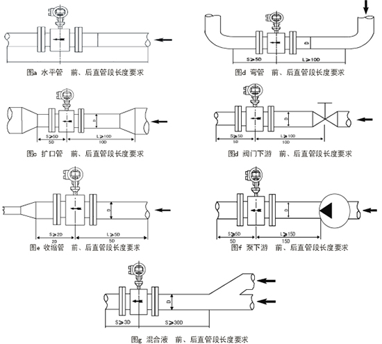 流量計(jì)前必須有10D左右的直管段,以消除各種局部阻力對(duì)流線(xiàn)分布對(duì)稱(chēng)性的影響。