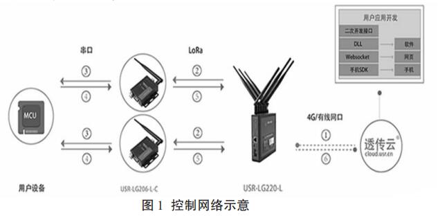 基于 LoRa 技術(shù)的無線流量計(jì)由控制,計(jì)量,通信,電源,存儲(chǔ)五個(gè)模塊組成。以污泥回流流量計(jì)為主體的計(jì)量模塊將采集到的供暖管道數(shù)據(jù)發(fā)送到通信模塊,基于 LoRa 技術(shù)的通信模塊將流量數(shù)據(jù)存儲(chǔ)并且發(fā)送到由管理人員監(jiān)控的控制模塊,管理人員通過控制模塊和通信模塊向流量計(jì)發(fā)送指示。電源模塊是無線流量計(jì)的能源中心,可以為流量計(jì)的其他模塊提供動(dòng)力支持。流量計(jì)安裝完畢后可在小區(qū)內(nèi)形成控制網(wǎng)絡(luò),網(wǎng)絡(luò)示意圖如圖 1 所示。