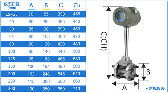 卡裝式渦街流量計(jì):DN10、DN15、DN20、DN25、DN32、DN40、DN50、DN65、DN80、DN100、DN125、DN150、DN200、DN250、DN300;