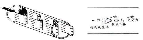 在流體中設(shè)置三角柱型旋渦發(fā)生體,則從旋渦發(fā)生體兩側(cè)交替地產(chǎn)生有規(guī)則的旋渦,這種旋渦稱為卡門(mén)渦街旋渦,如右圖所示,旋渦列在旋渦發(fā)生體下游非對(duì)稱地排列。設(shè)旋渦的發(fā)生頻率為f,被測(cè)介質(zhì)平均流速為 ,旋渦發(fā)生體迎流面寬度為d,表體通徑為D,即可得到以下關(guān)系式: