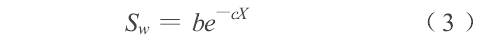 (1)旋轉數Sw與X成指數關系,即隨著下游距離X的增加,旋轉流強度以指數方式衰減。指數系數c和α值與介質的性質,雷諾數等參數有關。