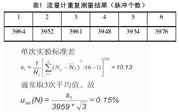 輸入量Ni的不確定度來源主要是流量計測量的不重復性,采用A類評定方法評定。