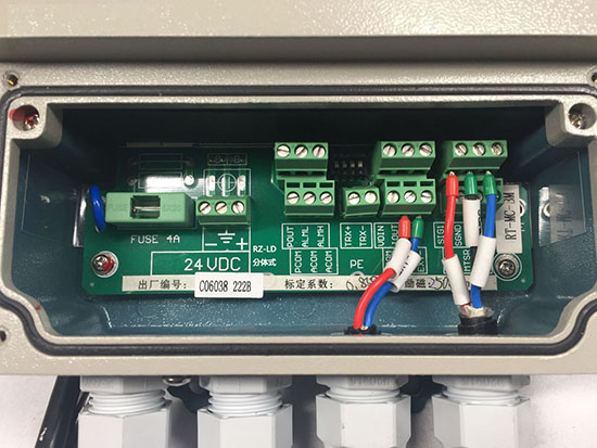 二、一體型鹽酸流量計接線實拍圖