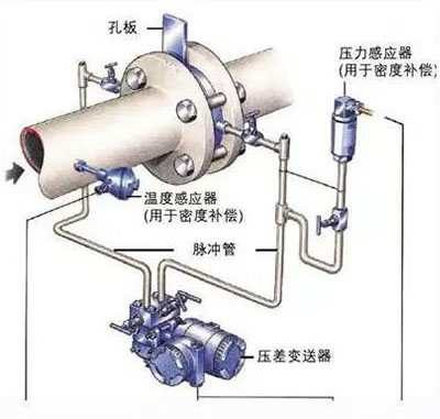 氣體流量計,就是在管道內(nèi)部加裝一個中間開孔的圓板,然后測量蒸汽在孔板前后的壓力差,經(jīng)過計算換算出蒸汽的流量。
