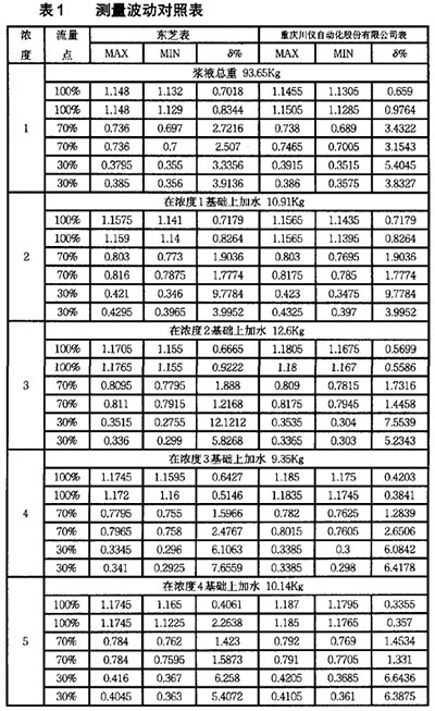 在造紙行業(yè)有大量的紙漿液體需要測量,就會用到大量的流量測量儀表,目前在造紙行業(yè)中用于測量流量的儀表,主要有熱水管道流量計等儀表,因為熱水管道流量計具有非常強的優(yōu)點,所以非常適合在紙漿的流量測量中使用。在紙漿實驗裝置上,使用串聯(lián)在同一管道上該公司生產(chǎn)的漿液型熱水管道流量計與日本東芝的漿液型熱水管道流量計測量不同濃度和流量的紙漿漿液,以驗證其可靠性。波動率對比實驗結(jié)果表明,該產(chǎn)品用于紙漿漿液測量時能夠很好地克服漿液噪聲。在滿流量測量時,上述實驗中各濃度下漿液測量穩(wěn)態(tài)波動率均在1%以內(nèi);其它流量下測量時,由于實驗系統(tǒng)主管道上游分流控制流速不穩(wěn),進而導致測量穩(wěn)態(tài)波動率相對較大,甚至達到近7‰ 但由表1可知,在各種漿液濃度及各流量點下,凱銘儀表有限公司生產(chǎn)的漿液型熱水管道流量計的穩(wěn)態(tài)波動率始終與日本東芝漿液型熱水管道流量計的測量結(jié)果一致,從而表明實驗系統(tǒng)的測量結(jié)果能準確反映實際漿液流量大小。 說明:MAX、MIN分別表示該組數(shù)據(jù)測得流速的的*大值和*小值,單位m/s。