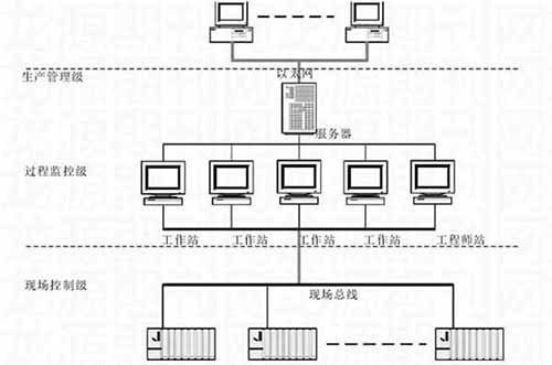 針對鎢礦選廠生產(chǎn)的實際需求,這里應(yīng)用相應(yīng)的自動化技術(shù),對自動化監(jiān)控系統(tǒng)進(jìn)行了設(shè)計。在系統(tǒng)設(shè)計中,遵循“方案合理、技術(shù)先進(jìn)、運行可靠、操作方便”的原則,系統(tǒng)整體采用集散控制系統(tǒng),基于現(xiàn)場總線通訊,其整體網(wǎng)絡(luò)構(gòu)架如下: