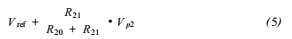整個電路的工作過程為:當P2.9為高電平時,Q1、Q2、Q3、Q4導通,此時Q5的基極電流為零,Q5截止,此時P2的端口2輸出+24V的電壓。此時P2.8為低電平,Q6、Q7、Q8、Q9,此時有電流流經(jīng)Q10基極,并使其基極和發(fā)射級導通,Q10的功能相當于一個二極管的作用,此時P1端口沒有電壓輸出。那么,A/D轉換器的參考輸入端Vref(+)為: