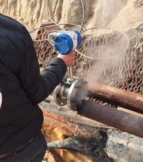 9.傳感器在有保溫層管道上的安裝。測量高溫蒸汽時,保溫層*多不能超過支架高度的三分之一。