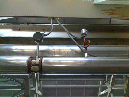 渦街流量儀表應盡量避免安裝在振動較強的管道上。若必須安裝,須在其上下游2D處加設管道緊固裝置,并加防振墊,加強抗振效果。