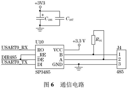 防腐型電磁流量計(jì)輸出的流量值可以通過(guò)外接的 TFTLCD 屏直接顯示,還可以通過(guò)預(yù)留的 RS485 通信接口將數(shù)據(jù)發(fā)送到上位機(jī)中。RS485 電路*大的優(yōu)點(diǎn)是 485 電平與 TTL 電平兼容,方便與 TTL 電路相連;抗共模干擾能力強(qiáng);數(shù)據(jù)傳輸速度快,高達(dá) 10 Mbps;通信距離遠(yuǎn),*大為 1.2 km。系統(tǒng)采用 SP3485 芯片進(jìn)行數(shù)據(jù)通信,SP3485 是一款低功耗芯片且符合RS485 協(xié)議的收發(fā)器,電路圖如圖 6 所示。