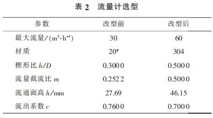 2) 為了解決泵出口流量計(jì)頻繁泄漏以及流量較低不能滿足工藝需求的問(wèn)題,更換新型流量計(jì),其相關(guān)參數(shù)見表 2。 更換后的流量計(jì)運(yùn)行 4 000 h后未出現(xiàn)泄漏現(xiàn)象。