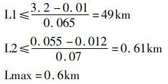 式中: L1---按允許電感計(jì)算的電纜*大允許長度,單位 km;