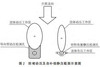 新智能分體式電磁流量計采用拋物面導(dǎo)向型結(jié)構(gòu)作為動壓測點,采用對稱自補(bǔ)償型式的靜壓測點,可以有效地解決來流方向偏流時信號的穩(wěn)定采集,來流偏離管道軸線時,可以維持輸出差壓基本不變,如圖2所示。