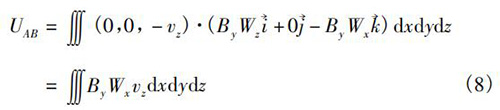 式中V為純水流量計(jì)傳感器測量空間;W→為權(quán)函數(shù)。在直角坐標(biāo)系(x,y,z)中,式(5)可以轉(zhuǎn)換為