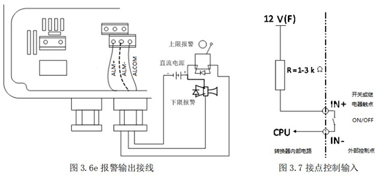3.由端子 IN+和 IN-引出線接啟動按鈕或啟動控制信號(參見圖 3.7),用來實現定量控制啟動同步。當按一下啟動按鈕,轉換器記錄當前累積量,并根據定量值計算出目標累積量,開始計數。當目標值到,輸出繼電器信號。