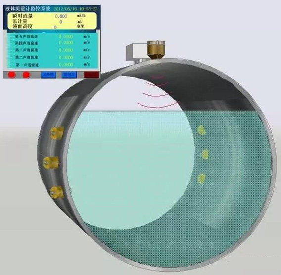超聲波流量計(jì)的工作原理是,借助時(shí)差式測量原理,通過一對(duì)超聲波探頭發(fā)射信號(hào)穿過中間介質(zhì)到達(dá)另一側(cè)管壁,被另一個(gè)探頭接收到,另一側(cè)探頭同樣發(fā)射信號(hào)被*一個(gè)探頭接收到。在這個(gè)過程中,由于信號(hào)的輸送時(shí)間受介質(zhì)流速的影響,所以,存在一定的時(shí)間差。基于此,超聲波流量計(jì)借助相關(guān)公式計(jì)算出了相應(yīng)的流量值。