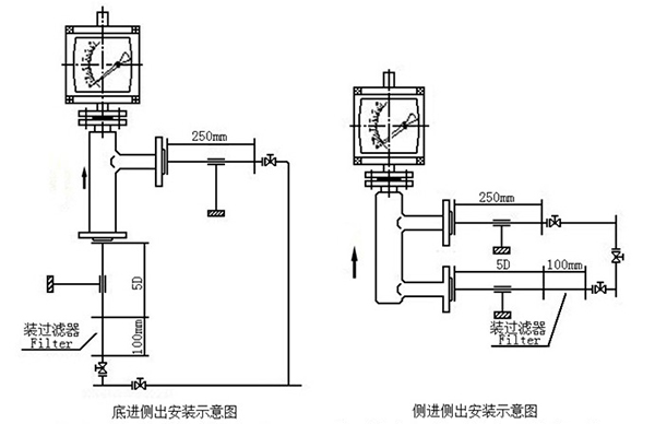 4.若介質(zhì)中含有固體雜質(zhì),應(yīng)在閥門和直管段間加裝過濾器;若介質(zhì)中含有鐵磁物質(zhì),應(yīng)在指針浮子流量計的上游安裝磁過濾器。