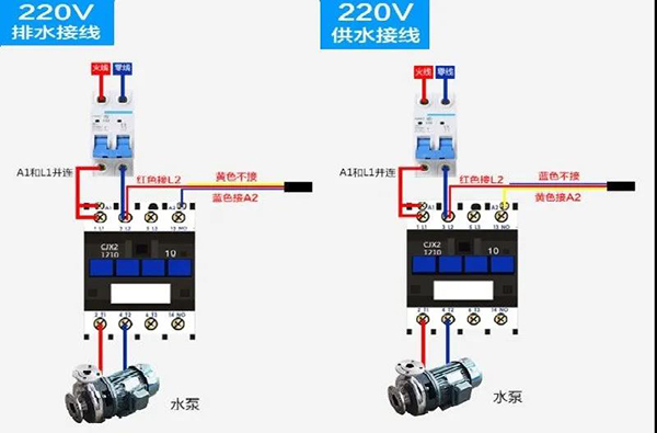 使用藍色和棕色的電線:浮球在上液位時,接點是不通的狀態。浮球在下液位時,接點是接通的狀態。