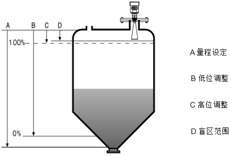 注:使用瀝青液位計時,務(wù)必保證*高料位不能進入測量盲區(qū)(圖中D所示區(qū)域)。