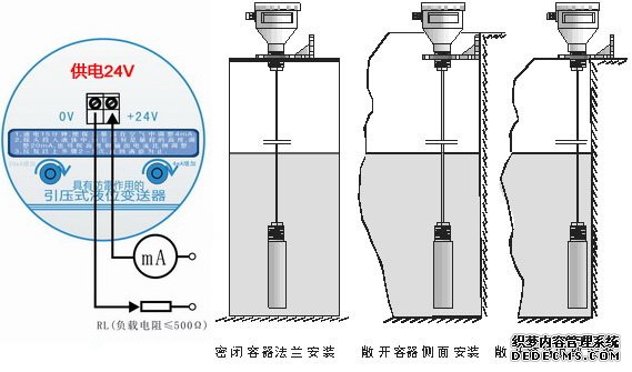 在流動液位中安裝方法:在流動的液體中測量液位時,因介質波動較大,可以在液體中插入一根Φ45mm的鋼管,同時在水流方向的反面不同高度的管壁上打若干小孔,使液體流入管內。另一種方法是在液體底部加裝阻尼裝置,以過濾泥沙和消除動態壓力和波浪對單法蘭靜壓液位計安裝測量的影響。