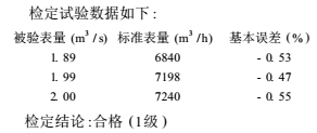 現以其中1臺開封儀表廠生產的口徑1600mm的0.5級電磁流量計為例,分析超聲波流量計的檢定方法及其優(yōu)缺點。